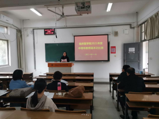 为推进“教师、教材、教法”三教改革,落实立德树人根本任务,切实提高中青年教师的教学能力和教学水平,我院于11月17日下午在芙蓉路校区举办了2021年度临床医学院中青年教师教学基本功比赛,共有17名专兼职教师参加了此次比赛。比赛由学院周卫凤副院长主持,邀请到我校继续教育学院院长周建庆教授莅临指导并担任主评委,临床医学院院长潘敏教授,机关党总支副书记刘侠副教授等六位专家担任评委,比赛分二组进行。