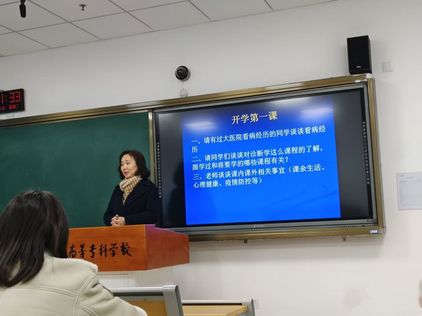 教研室活动以期教学检查为主线,围绕本学期开设课程展开集体备课,并在督导听课与相互听课安排、教材使用、资源库建设、教学能力大赛、实验实训课程安全开展等方面展开讨论和布置具体任务,在“开学第一课”活动中,教研室按照学院统筹安排,根据一年级与二年级学生学情特点,潘敏老师、周卫凤老师在新桥校区临床医学专业(免费订单定向班)《诊断学》教学中利用绪论教学融入“生命至上,扎根基层”服务基层群众健康的思政元素,引导学生明确学习目标,找准自身定位,珍惜学习机会。李芳老师在《临床医学概论》的教学中将临床工作中先进事迹为例集中在第一课的课间以视频形式播放,培养学生敬业爱岗的时代精神。赵芸飞老师在开学第一课的课程思政融入中根据自身参与学校健康驿站建设,进行了生命健康教育,引导学生树立“做好自身健康第一责任人”理念。有的教师给学生进行了日常安全教育,帮助学生增强安全意识,提高防范安全风险的能力等等。学生们课堂上仔细聆听、认真思考,纷纷表示“开学第一课”有温度、有情感、有力量,内容丰富、生动形象,为本学期的学习、生活进一步明确了目标、指明了方向。(撰稿:临床医学院 何俊楠 高鑫;核稿:临床医学院 周卫凤 喻德富;编辑:党委宣传部 姜楠;审稿:姜楠)