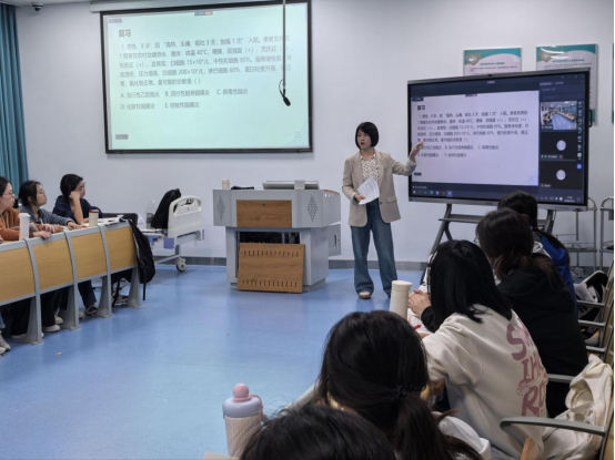 外科教研室黄丽老师聚焦《妇产科学》产后出血关键内容授课。教师以急救流程、风险评估、止血技术、多学科协作等临床实操为重点,通过病例复盘、情景模拟、急救演练,强化学生生命至上、快速响应、精准施救的临床能力,同步融入敬畏母儿生命、恪守医德规范、守护母婴安全的思政内涵,培育医者仁心与责任担当。内科教研室李芳老师围绕《传染病学》肾综合征出血热章节展开示范教学。结合流行病学特点、临床分型、诊疗规范与疫情防控案例,把公共卫生责任、医者使命担当、生命健康守护融入课堂,引导学生认识传染病防控的重要性,厚植敬畏生命、服务群众的职业情怀,强化基层医疗卫生岗位责任意识。