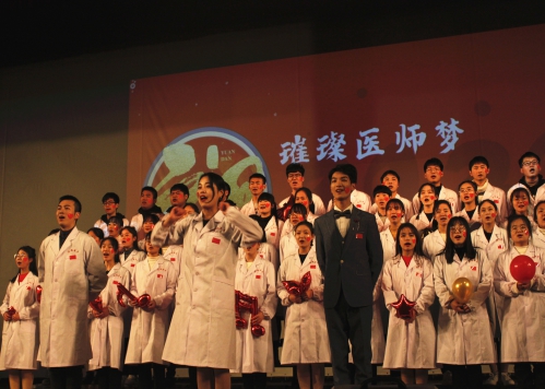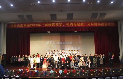 2019年12月27日,临床医学系“璀璨医师梦,相约再启航”2020年元旦晚会在图书馆大礼堂成功举办。临床医学系系主任王万荣、党总支副书记刘侠、副主任张薇、系部辅导员和部分教师出席晚会。