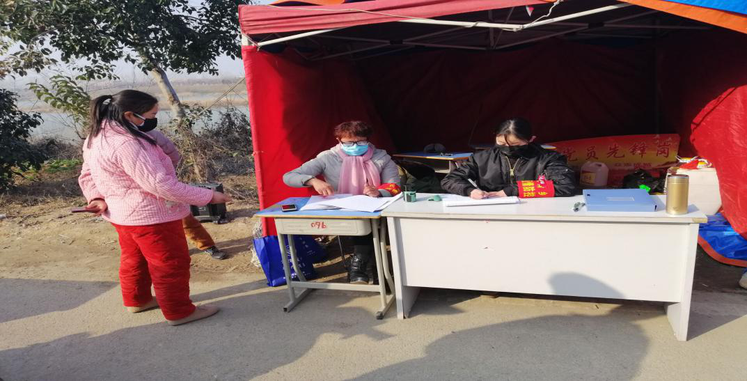 (图为严慧明同学在交界处守卡)