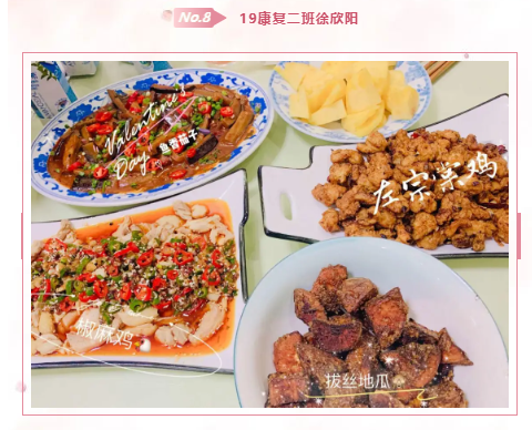 为备战此次云厨艺比赛,同学们都在家里的厨房忙活起来,有的和家长互动展厨艺,有的单枪匹马,大秀厨艺绝活。同学们纷纷在线上分享着自己选材、洗菜、切菜的温馨一幕。不时地交流美食心得,洋溢着满满的幸福味道。本次比赛通过临床医学系公众号平台、安徽医专回音墙将优秀作品进行云展示和线上投票,经过一周的评比,很多优秀作品脱颖而出。花式摆盘的蒸鱼、荤素搭配的全家福、创意西式下午茶等等进入了眼帘,无论是形状、色泽还是摆盘,都非常专业,体现了大家的厨艺功底。同学们大发赞叹:真是好厨艺!