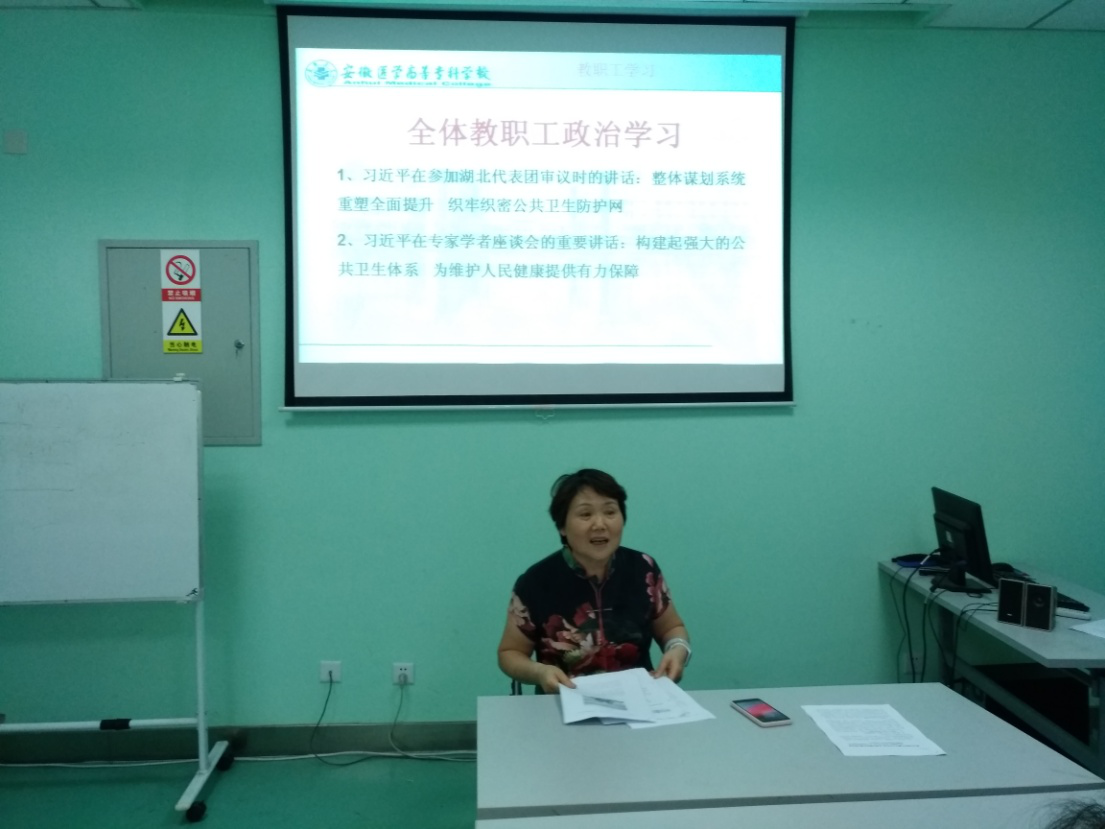 6月24日下午,临床医学系党总支在图书馆10楼会议室召开全体教职工政治学习会议,会议由临床医学系党总支副书记刘侠主持。