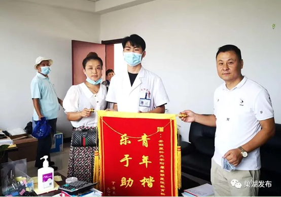 “8月20日晚上6时左右,巢湖市区狂风大作,暴雨如注。周得洋路过某施工地时,发现附近学校的一名高中生被狂风掀翻的施工围栏砸伤,周得洋立马前去施救并第一时间将该学生送至医院急诊科。一路上周得洋不停地鼓励该同学,为他加油打气,全然不顾自己已经被暴雨淋湿了全身。由于事发突然,周得洋在未知患者身份信息的情况下,只简单地询问了他的姓名就帮其挂号并垫付检查费用。直到一系列检查结束,患者的亲人来到医院急诊科,周得洋才悄然离开。随后,患者父母通过急诊科找到周得洋的联系信息,他们对周得洋同学的救人行为表示十分感激并赠送锦旗以表最真诚的谢意。”