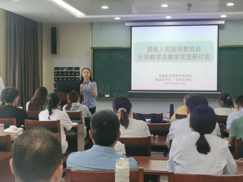 根据明光市人民医院、泗县人民医院两地新增教学医院教师教学能力培训方案,在学校教务处的组织下,2021年9月26日至9月28日,由临床医学院潘敏院长、基础医学院吴义春副院长带队,临床医学院副院长周卫凤牵头内科及全科教研室、外科教研室、影像教研室负责人等一行依次赴两地教学医院开展教学能力培训和交流座谈。