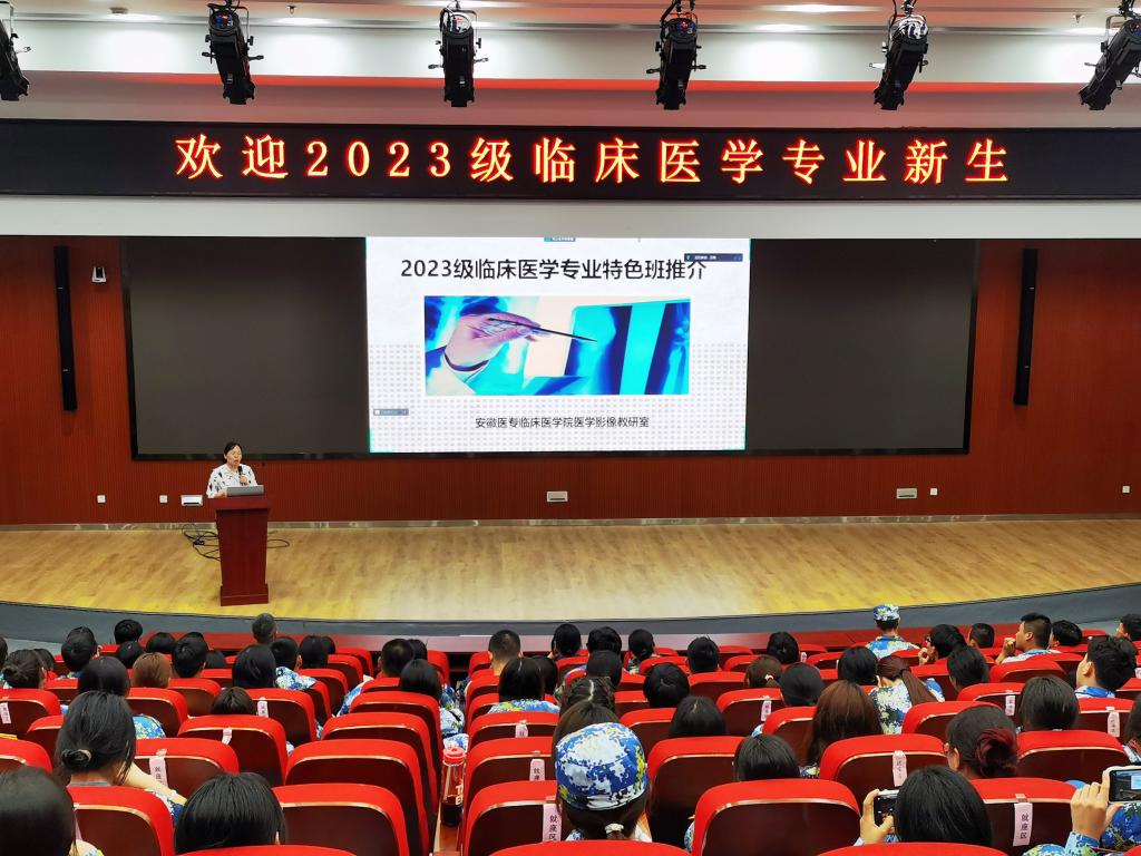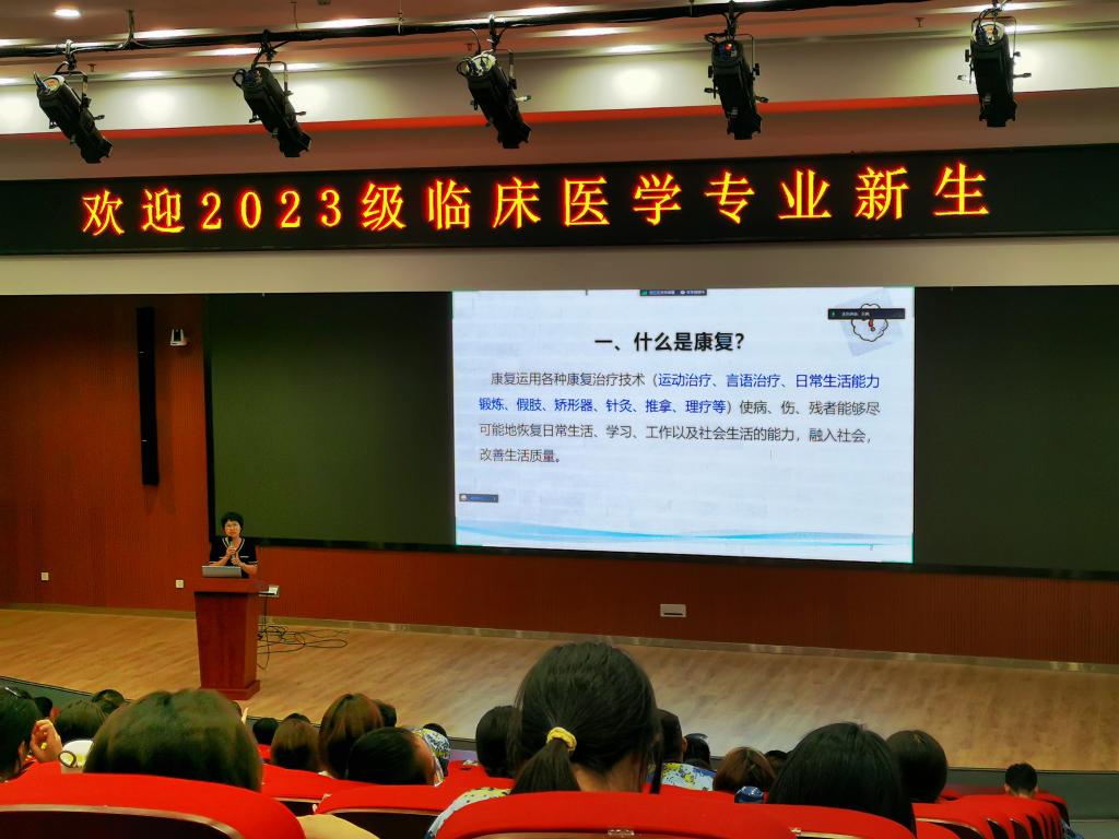 选择热爱,不惧未来。2023年9月10日,我院迎来了2023级新生,根据本学期教学工作安排,9月11日下午在新桥校区勤学楼一楼报告厅及学院会议室同步召开了2023级临床医学专业特色班推介会。会议由党总支副书记(主持工作)李宝军主持,副院长周卫凤、周德存,医学影像教研室主任陆启芳、康复及中医教研室主任石淑霞主讲,2023级临床医学专业新生及班级辅导员参加。